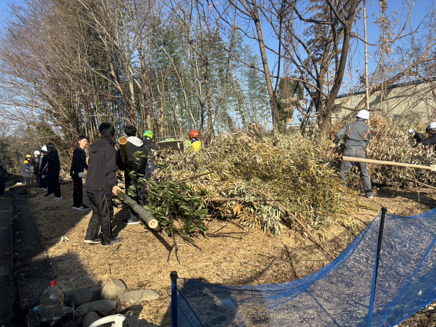 2026年2月14日の午前に、ボート部の艇庫周辺の竹藪整理が行われました。