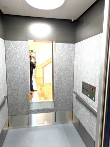 その後内覧会があり中庭(写真2)、3階建てなのにエレベーター(写真3)が設置。2階は定時制教室。3階は実験室等がありました。